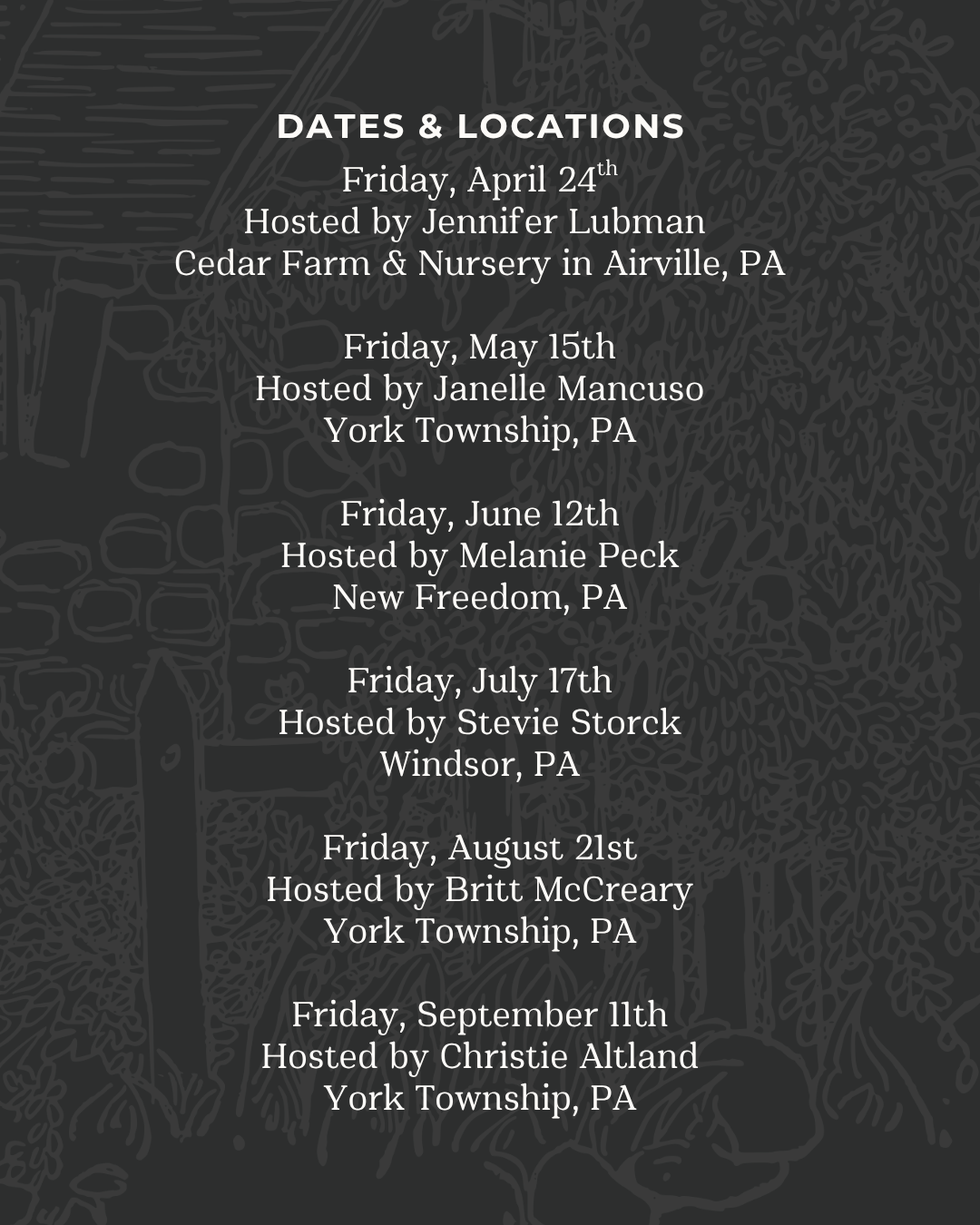 Our next Garden Circle is Friday, April 24th! Hosted by Jennifer Lubman (